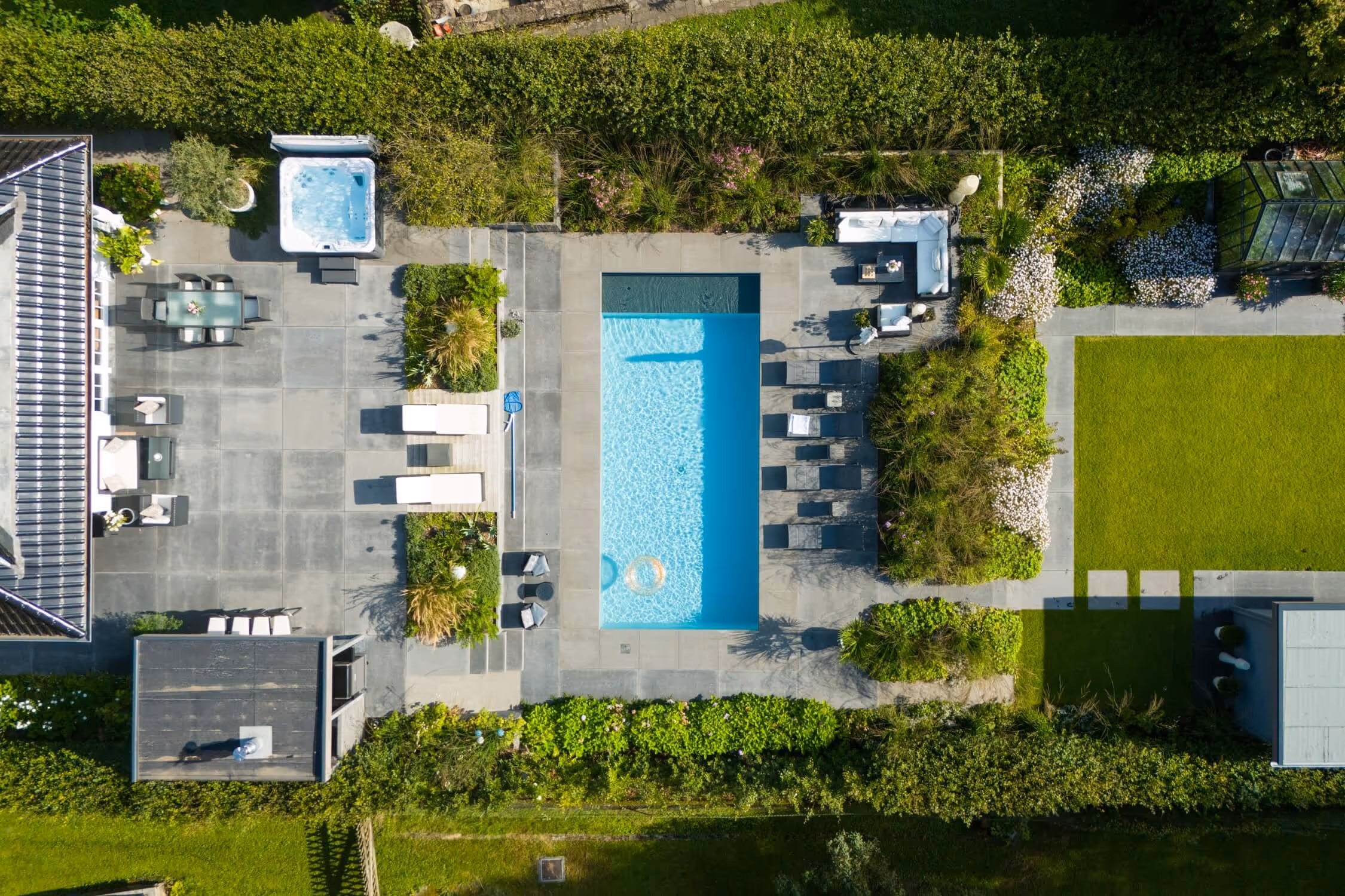 Moderner Pool mit großzügigem Sitz- & Loungebereich