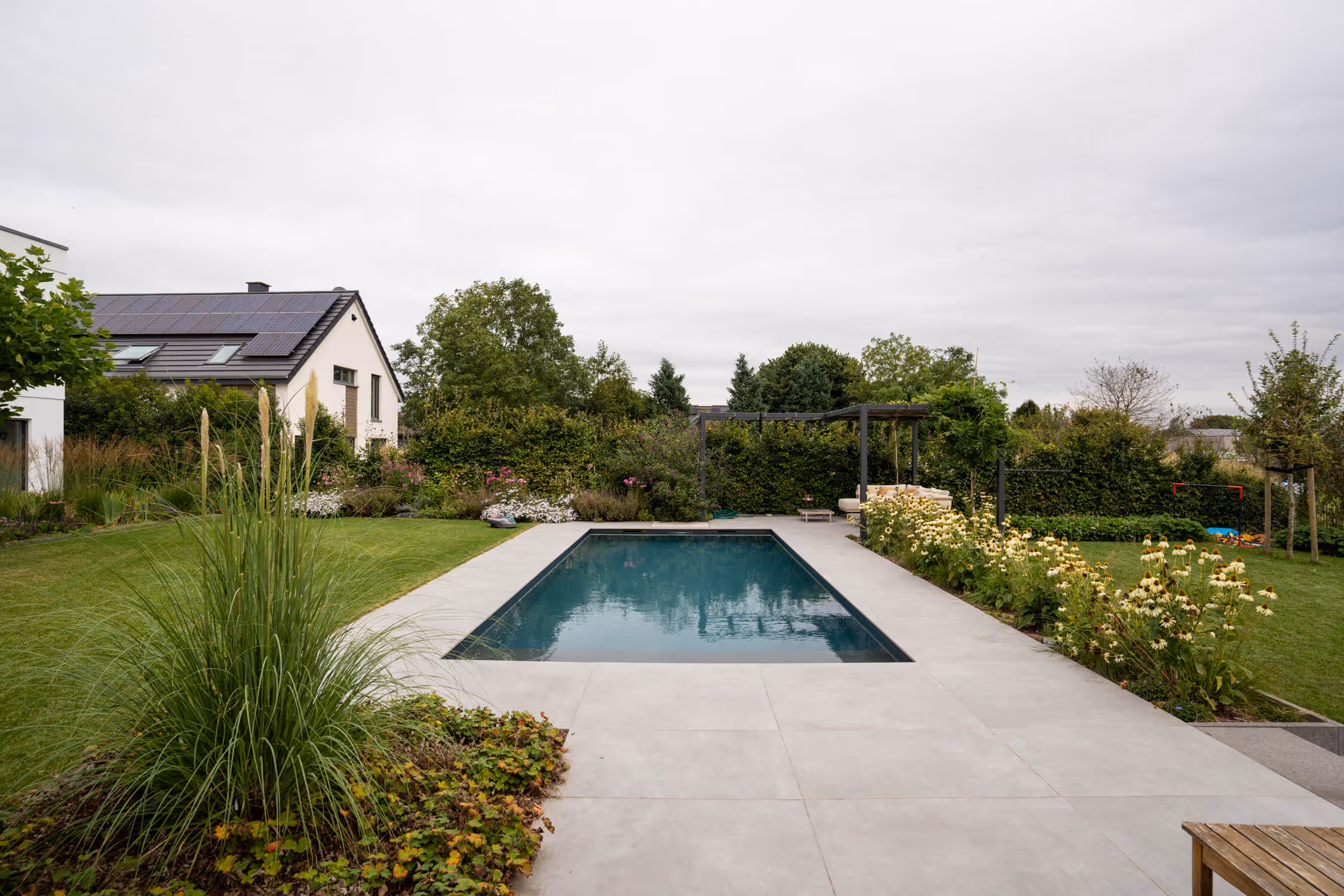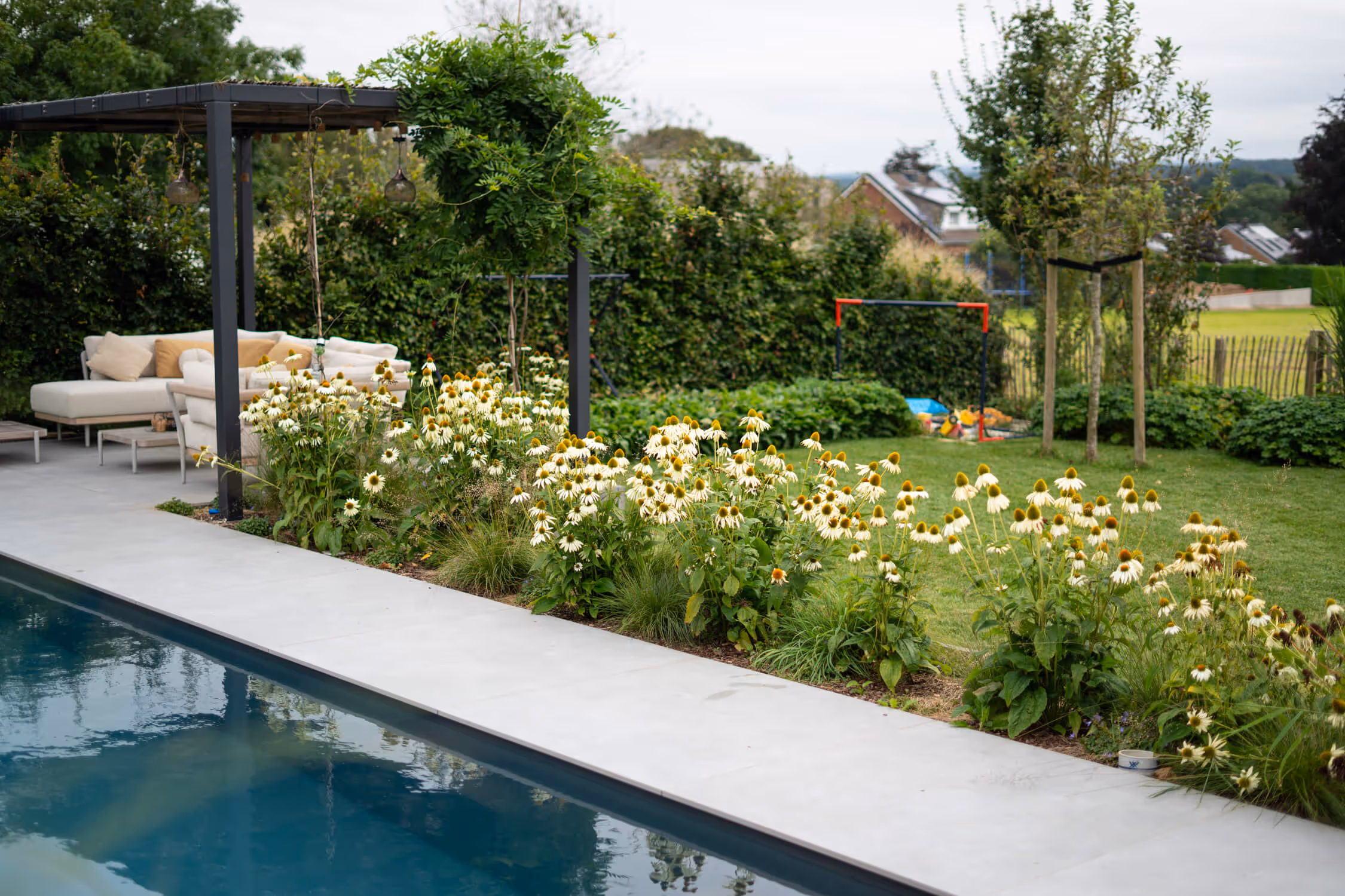 Harmonische Höhenstaffelungen durch Pflanzbeete und Mauerelemente