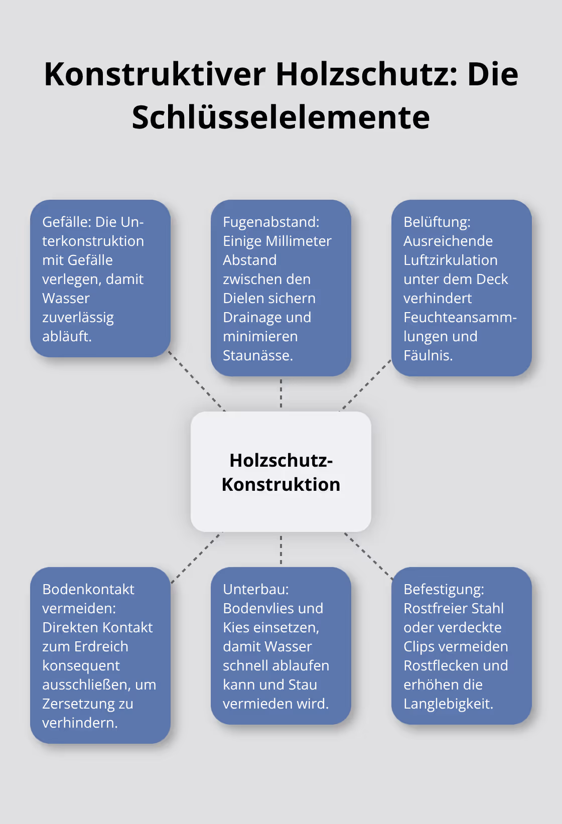 Die korrekte Verarbeitung ist ebenso entscheidend wie die Holzart selbst. Konstruktiver Holzschutz schlägt jede Oberflächenbehandlung: Gefälle in der Unterkonstruktion, Abstand zwischen den Dielen, gute Belüftung und rostfreier Stahl verhindern, dass Wasser staut und Fäulnis entsteht. Bodenvlies und Kies sind nicht optional, sondern essentiell, während verdeckte Befestigung mit Clips elegant wirkt und vor Rostflecken schützt – diese Details bestimmen, ob Ihr Pool nach zehn Jahren noch funktioniert oder bereits Schäden zeigt.
