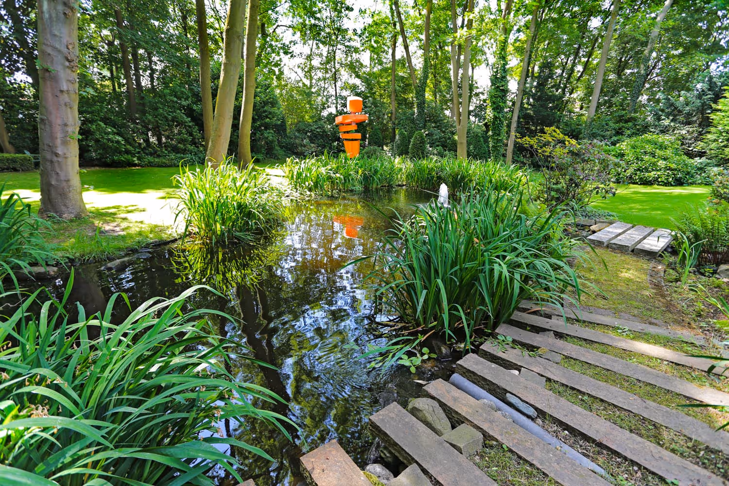 Kunstobjekte eingebettet in die Gartenlandschaft