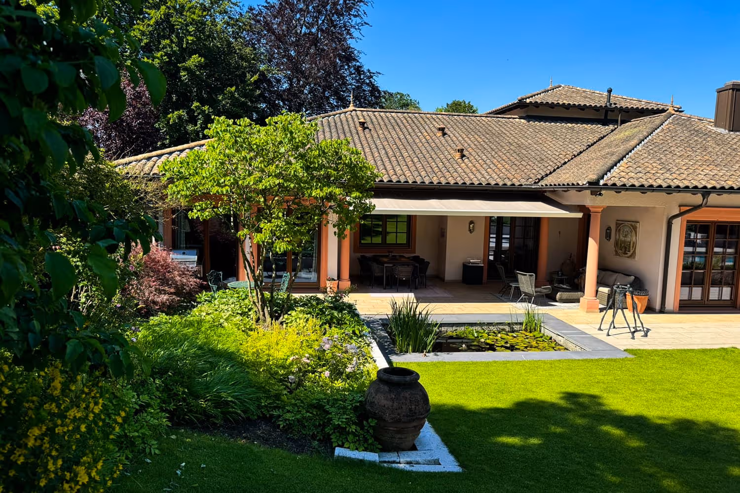 Garten mit Lounge und Pool