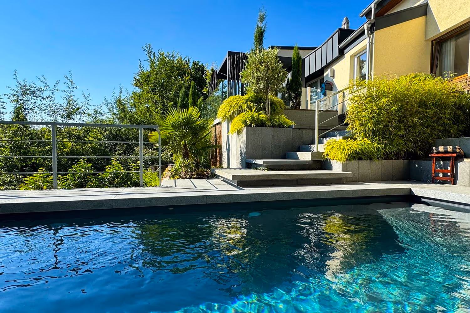 Moderner Poolgarten mit klarer Linienführung