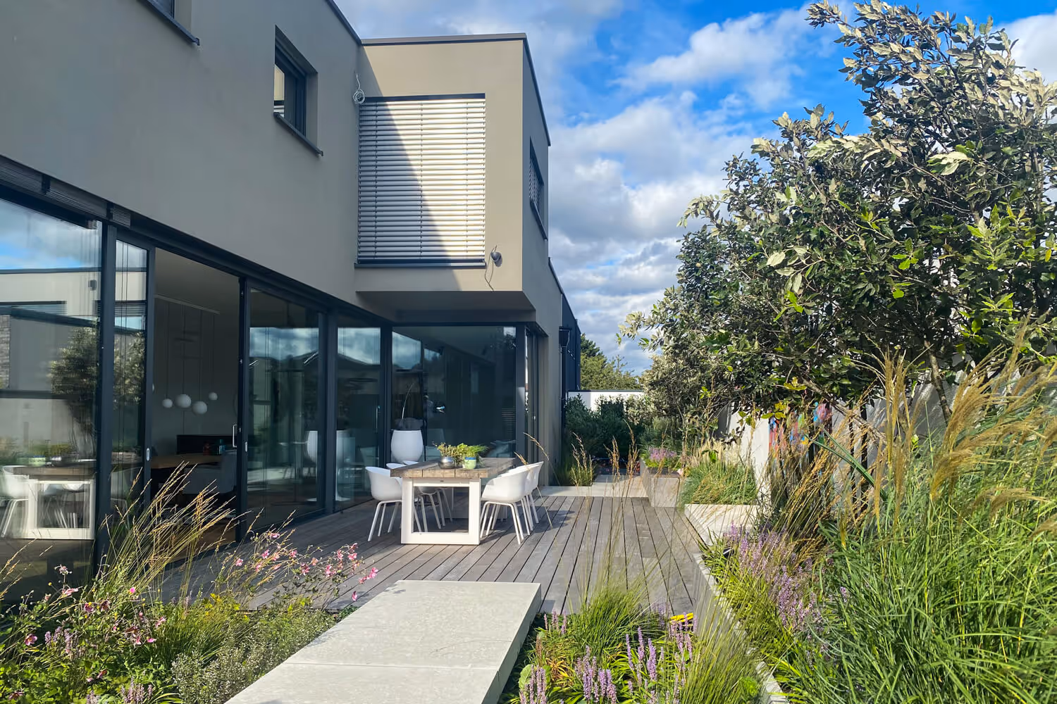 Kompakter, funktional gestalteter Garten mit hohem Aufenthaltswert